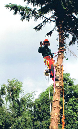 Baumfällung und Problemfällung mit Seilklettertechnik